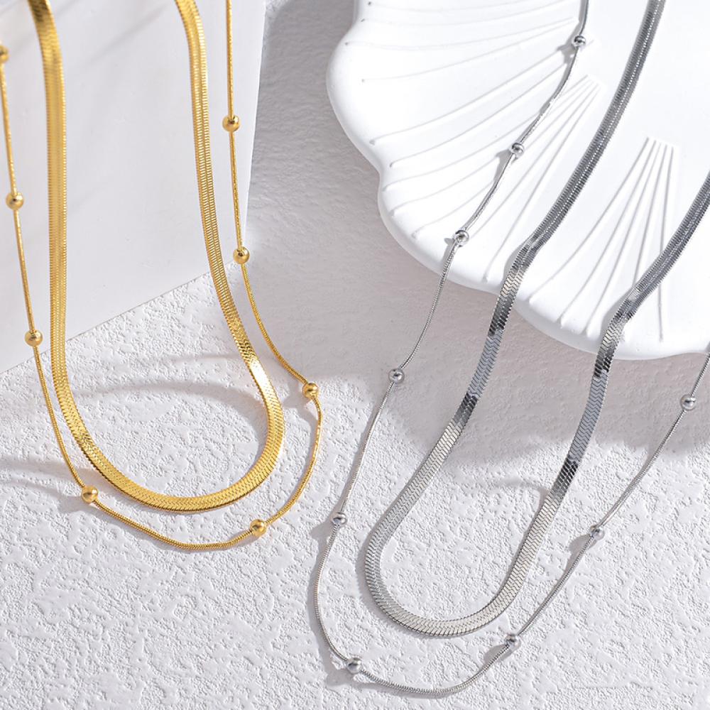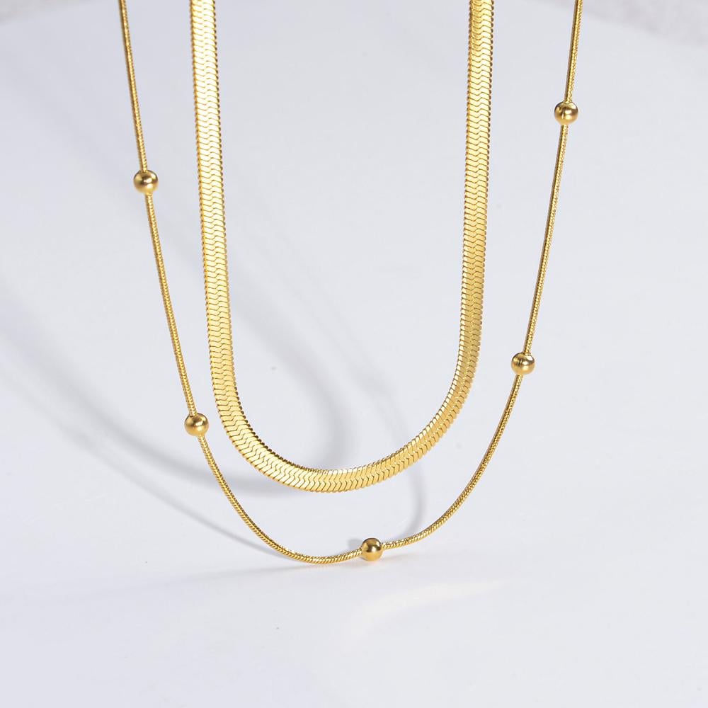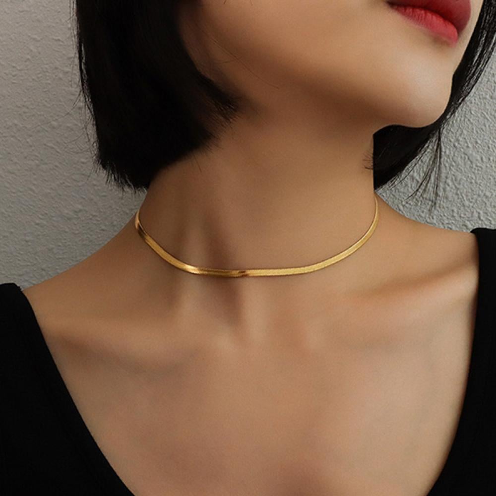 قلادة عتيقة مسطحة للنساء ، قلادة ربط الثعبان ، لون ذهبي وفضي ، قلادة مزدوجة من الفولاذ المقاوم للصدأ ، هدية مجوهرات الموضة
